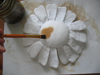 Красим ромашку раствором кофе-корица-какао-ПВА (как сделать раствор можно прочесть в МК по котам примитивам), красим серединку...