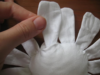 Набиваем ромашку холофайбером через оставшееся отверстие